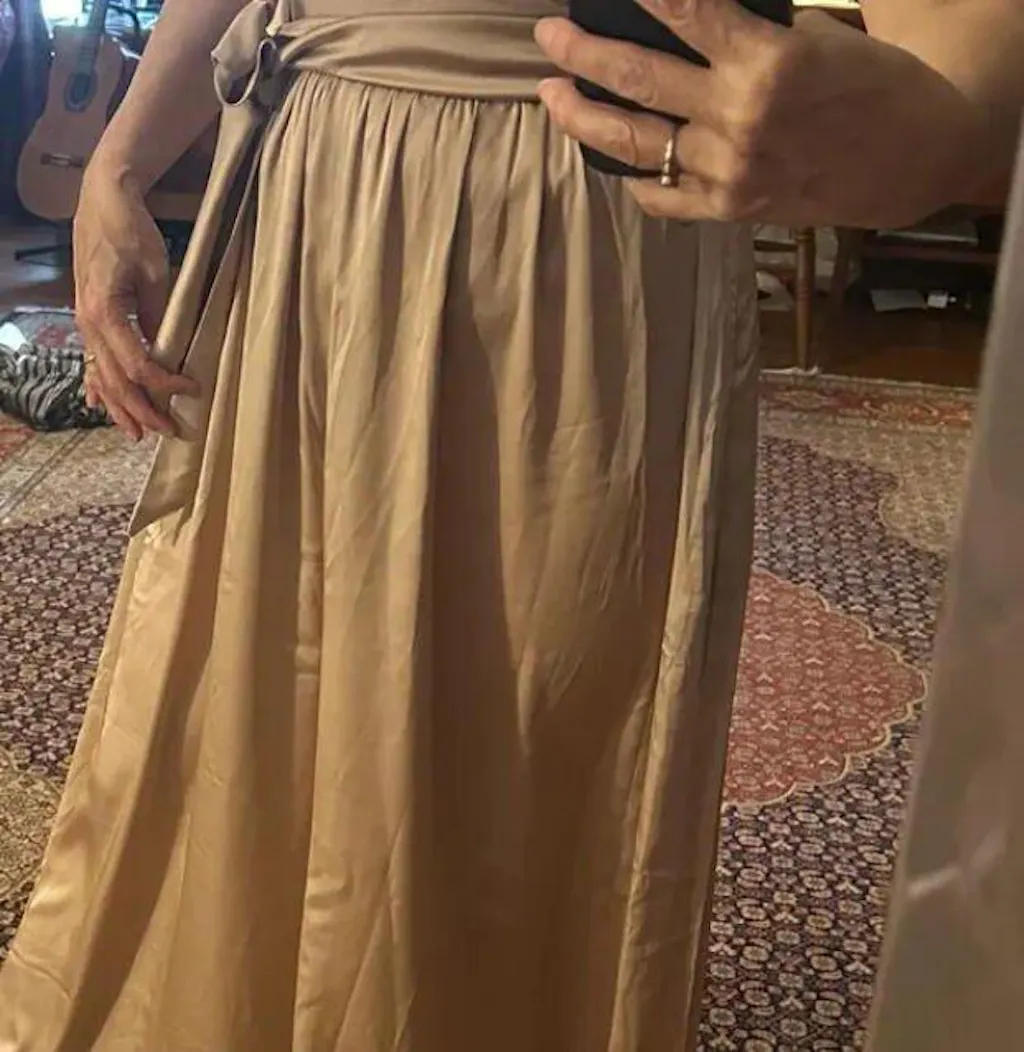Les teintes pouvant varier légèrement d'un coupon de tissu à l'autre, il est important que vous nous indiquiez le nombre total de robes nécessaires et le nom du mariage (surtout si elles ne sont pas toutes dans une seule commande et que nous devons identifier toutes les commandes de différentes demoiselles d'honneur). Ainsi, nous pourrons nous assurer que tout s'harmonise parfaitement.