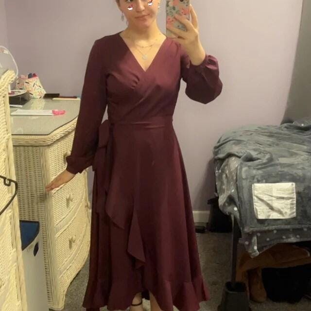 This ruffle wrap dress in softly draping with a V-neck, wrap over front with ties at the waist. Whether you’re petite, curvy, straight or tall, a wrap flatters almost every figure. Because they’re adjustable, you can tie them as loosely or tightly as you like. The tie waist allows you to easily wrap it once or twice around and tie it to fit figure.