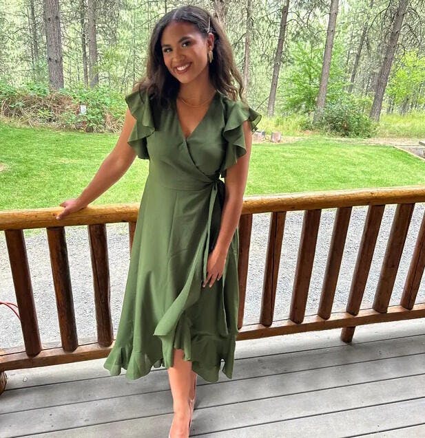 Olive green chiffon wrap dress
