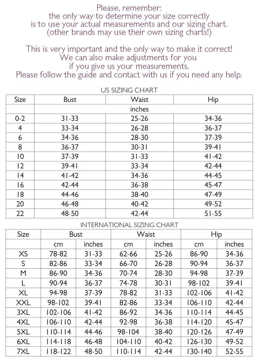 Please keep in mind that incorrectly taken measurements may lead to a size mismatch.