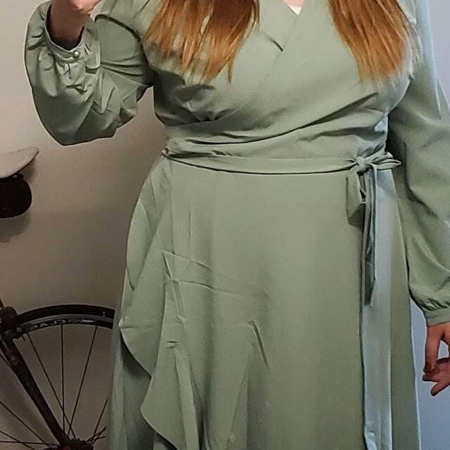 This ruffle wrap dress in softly draping with a V-neck, wrap over front with ties at the waist. Whether you’re petite, curvy, straight or tall, a wrap flatters almost every figure. Because they’re adjustable, you can tie them as loosely or tightly as you like. The tie waist allows you to easily wrap it once or twice around and tie it to fit figure.