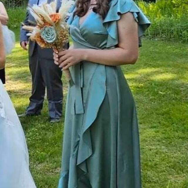 This satin silk ruffle wrap dress is made of charming delicate fabric which offers an eye-catching sheen and a second-skin feeling texture. Maxi dress in softly draping with a V-neck, wrap over front with ties at the waist. Whether you’re petite, curvy, straight or tall, a wrap flatters almost every figure. Because they’re adjustable, you can tie them as loosely or tightly as you like. The tie waist allows you to easily wrap it once or twice around and tie it to fit figure.